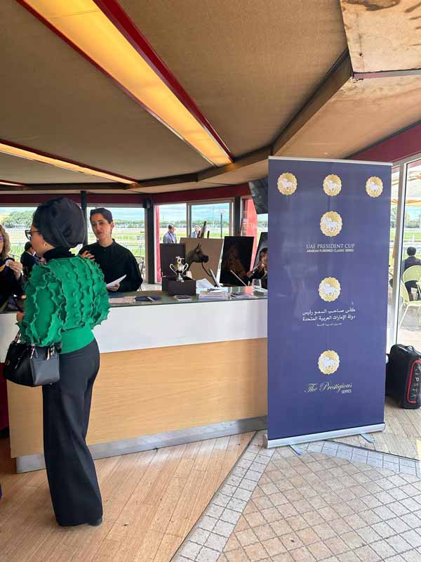 From a competitive standpoint, the UAE President Cup — with a record prize of €300,000 — saw the clear victory of the Arabian thoroughbred HM Alchahine, ridden by Cristian Demuro and trained by Elisabeth Bernard, ahead of Afjan and Extra Time. But the presence of Michi Grassi, with works such as Aj Kayya (already part of the Prince of Ajman’s collection) and Rhan al Shahania owned by Sheikh Mohamed bin Khalifa al THANI, a VIP from Qatar’s royal family, and the attention received from UAE media, added further prestige to a day that combined sport, art, and diplomacy.